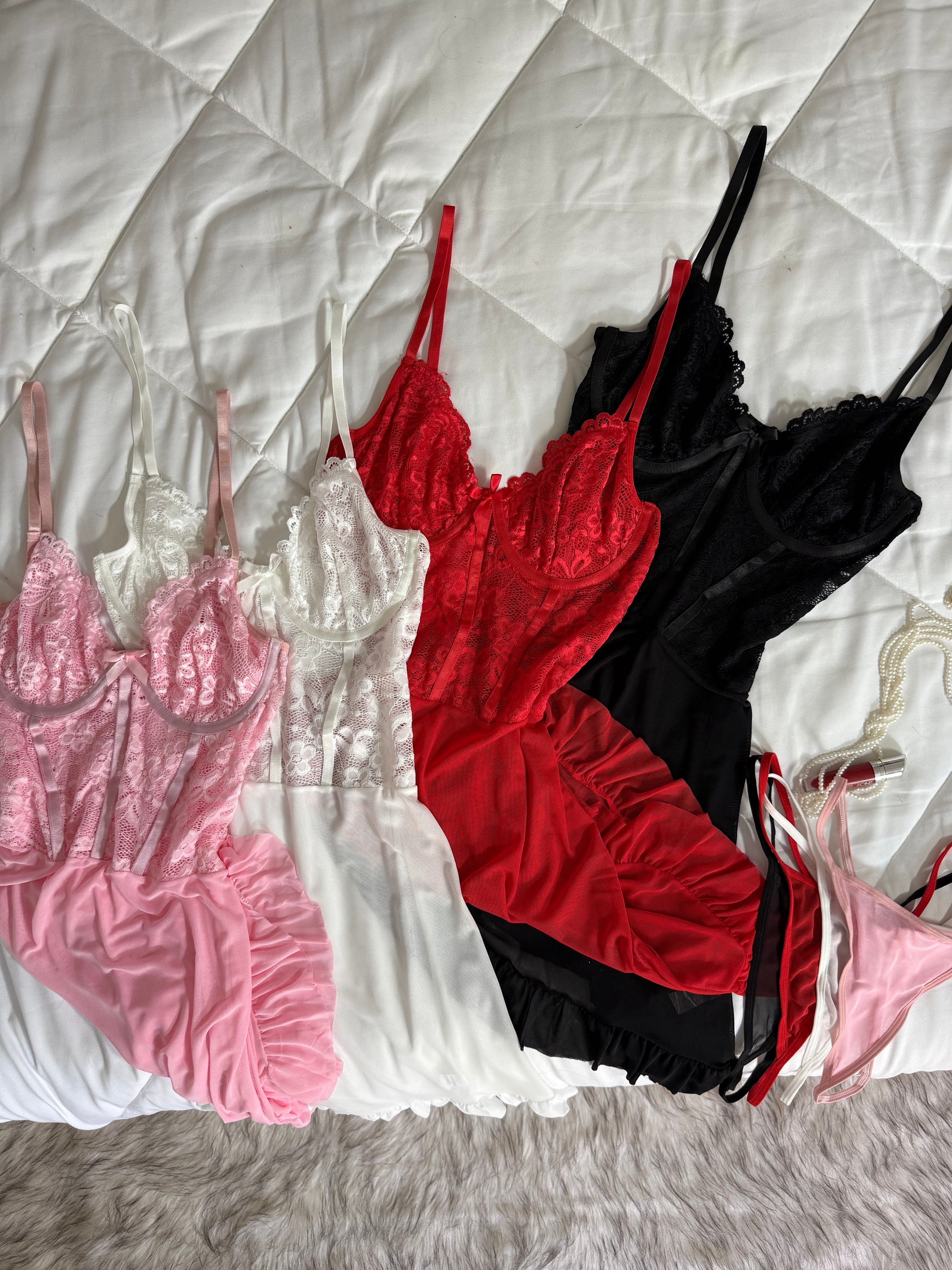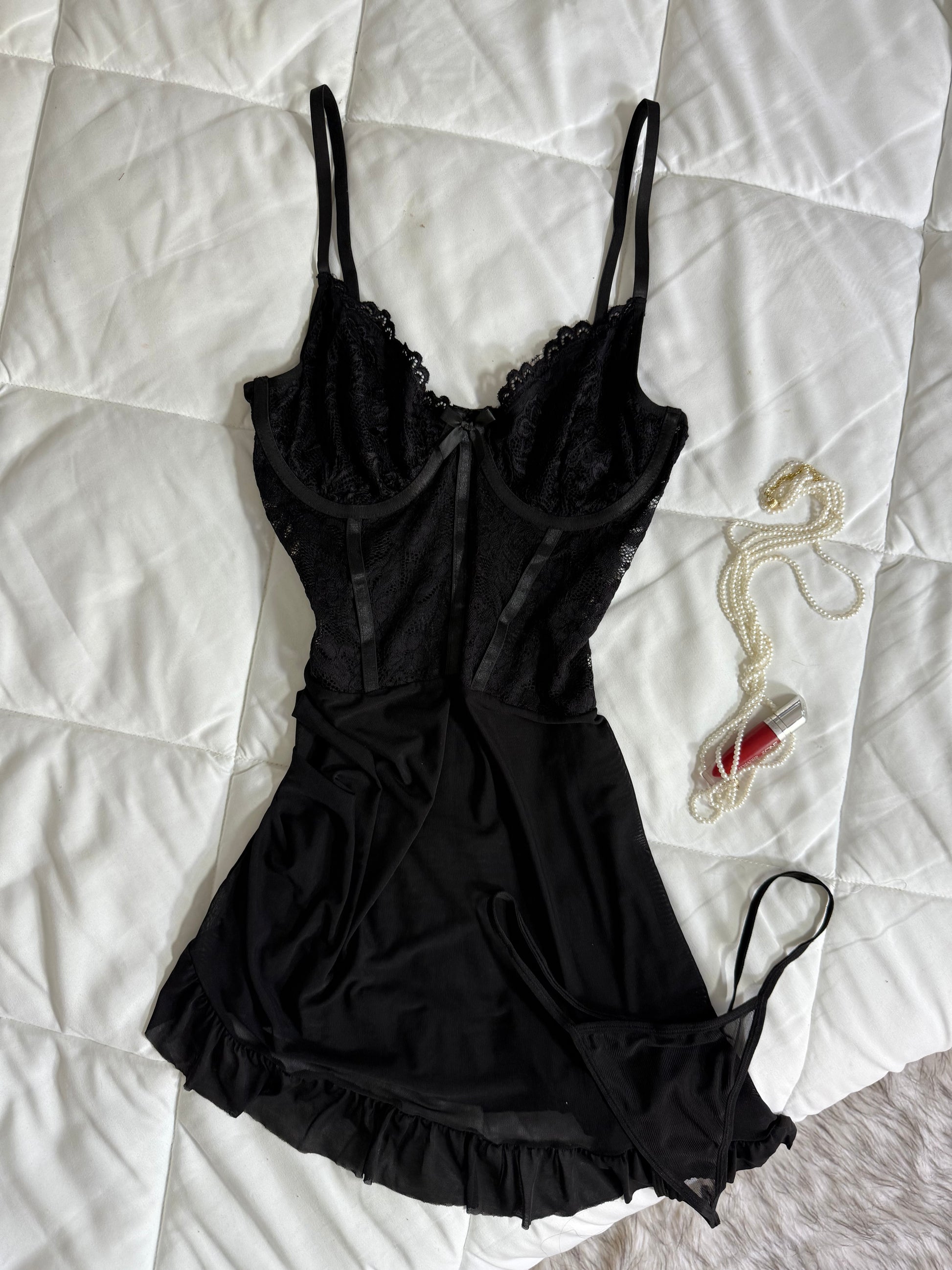Une pièce élégante qui allie douceur et séduction. Confectionnée en dentelle fine et tissu léger qui épouse délicatement les formes du corps. Son design raffiné met en valeur la féminité avec une touche chic et sensuelle 💋