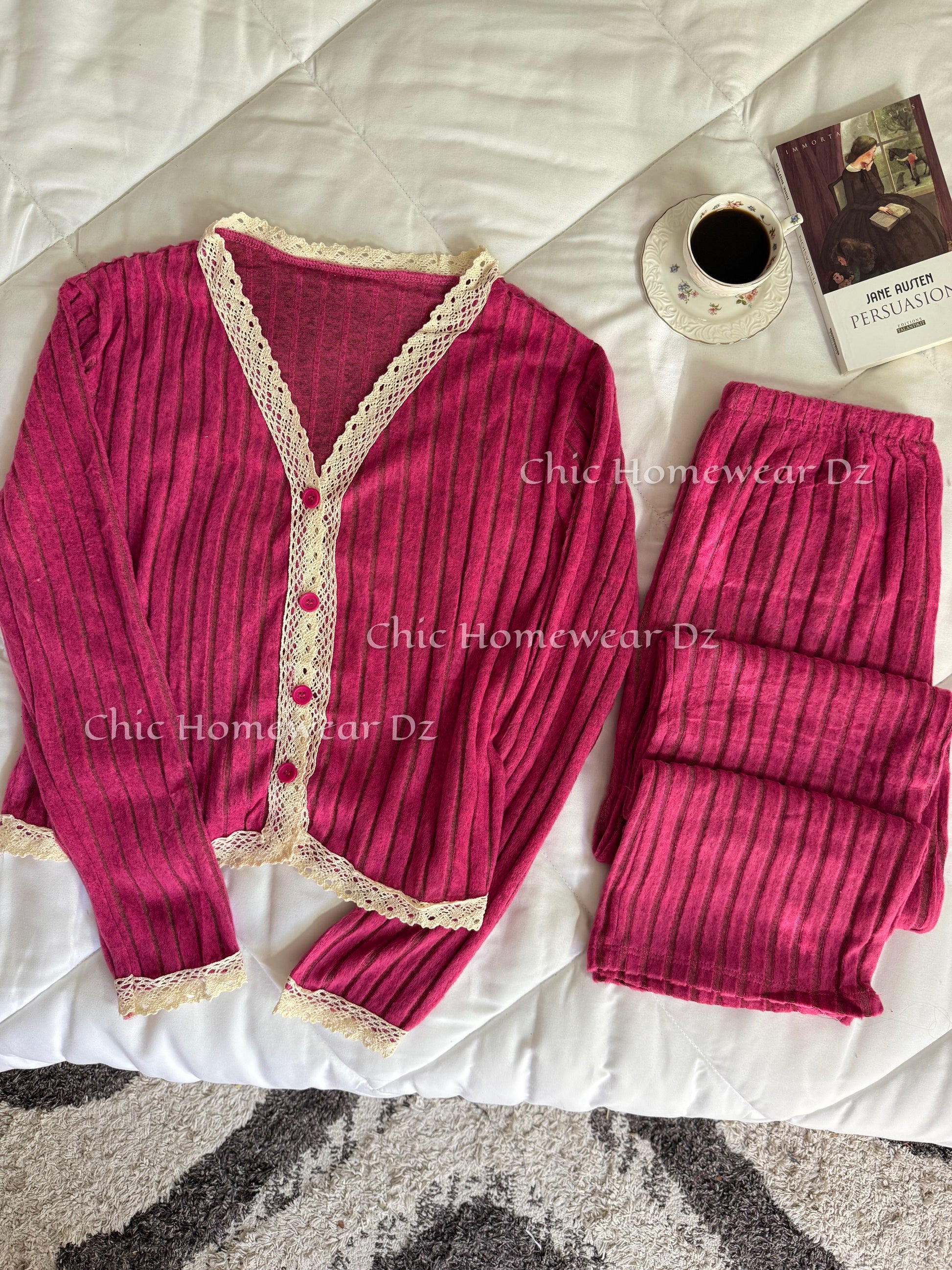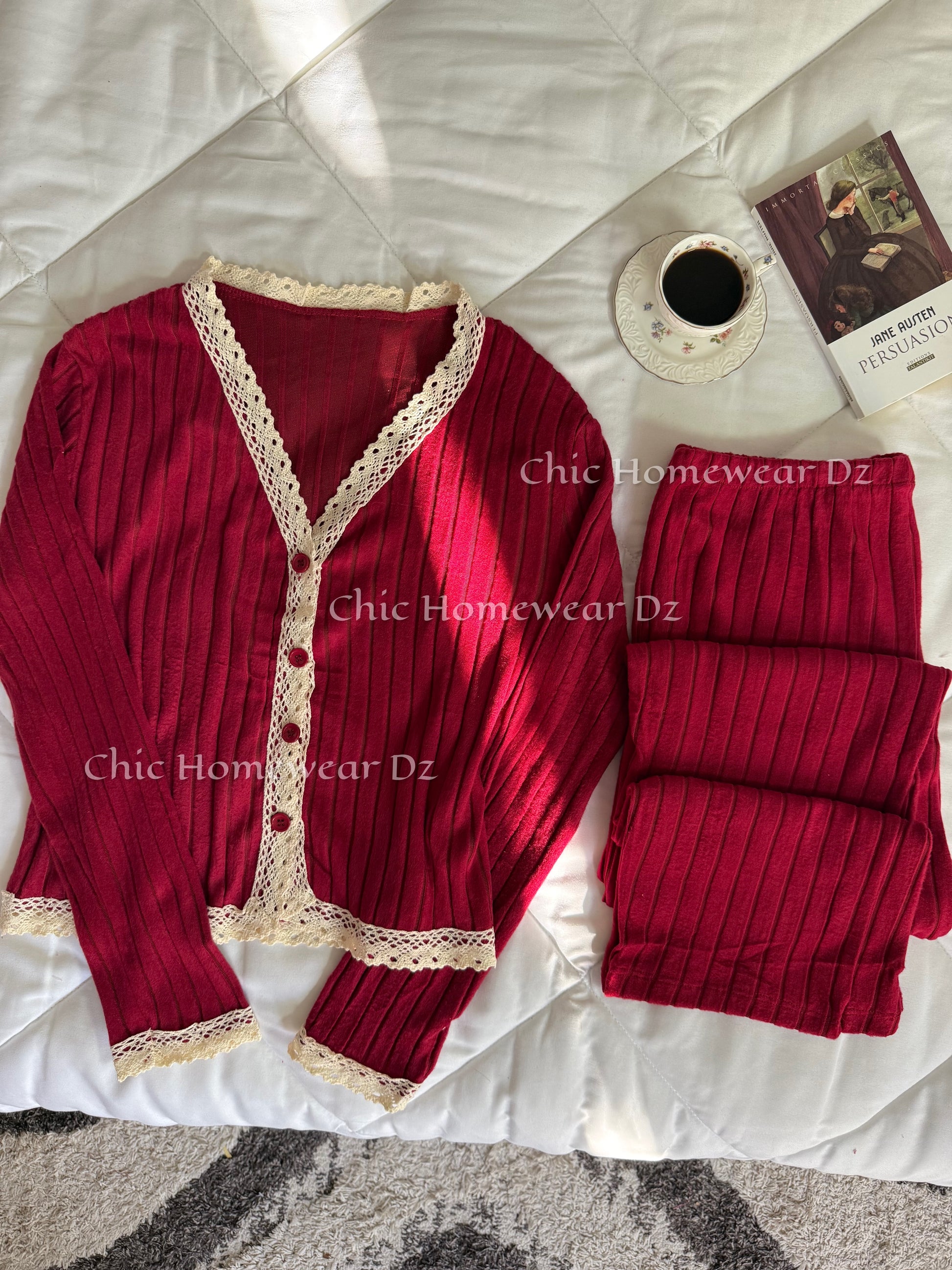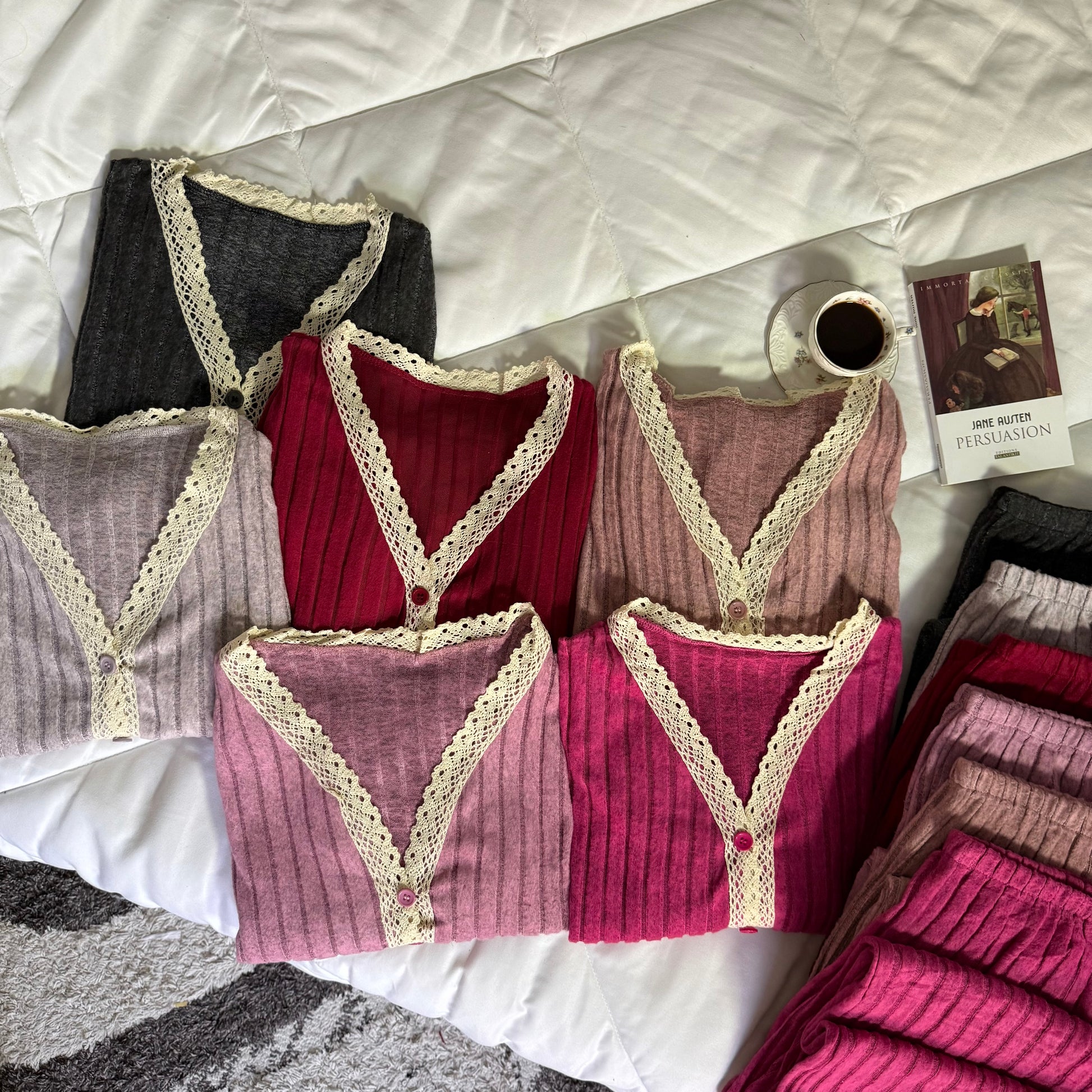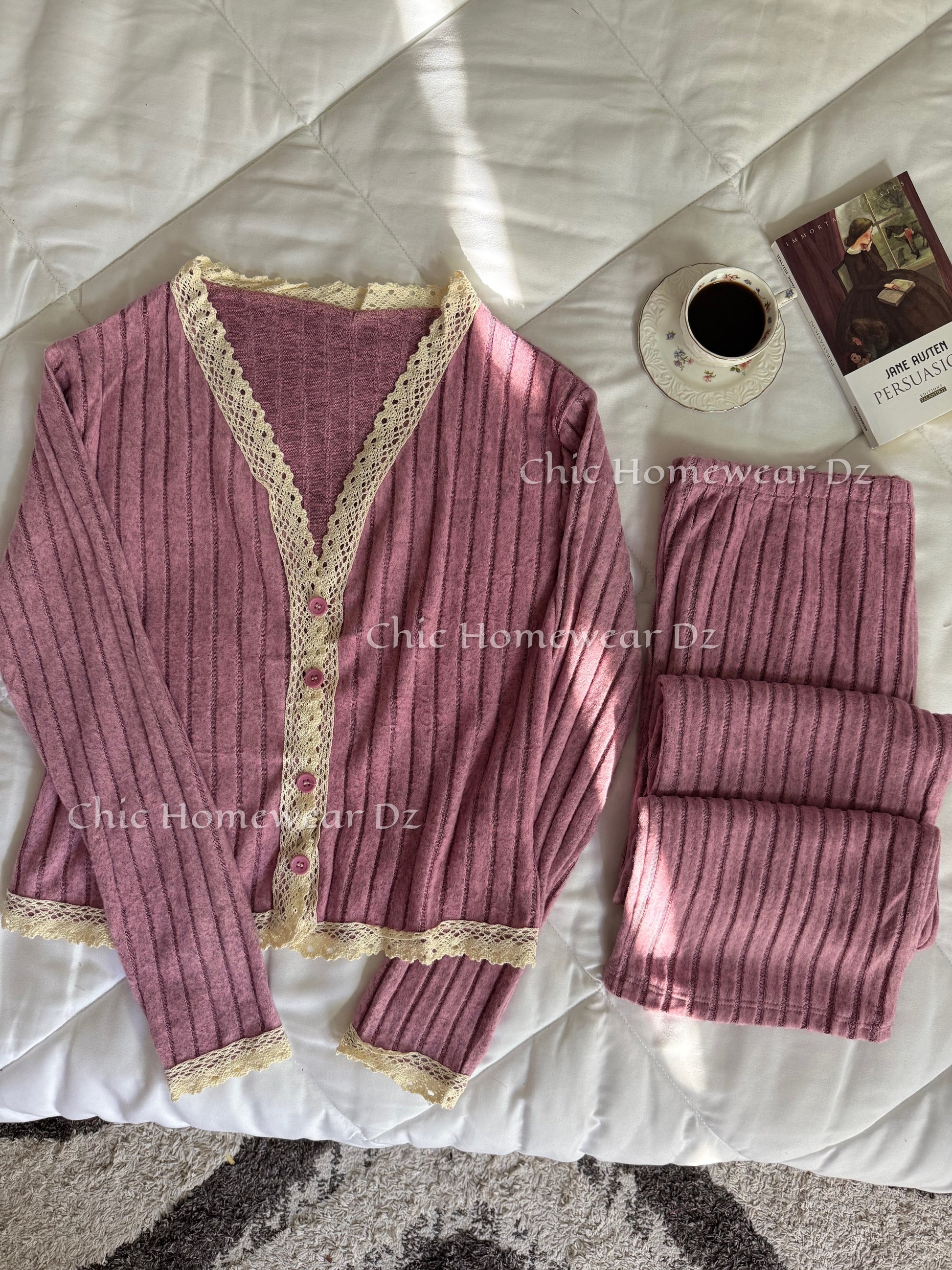 Pyjama doux et élégant avec de délicates finitions en dentelle , parfait pour un confort chic à la maison ✨