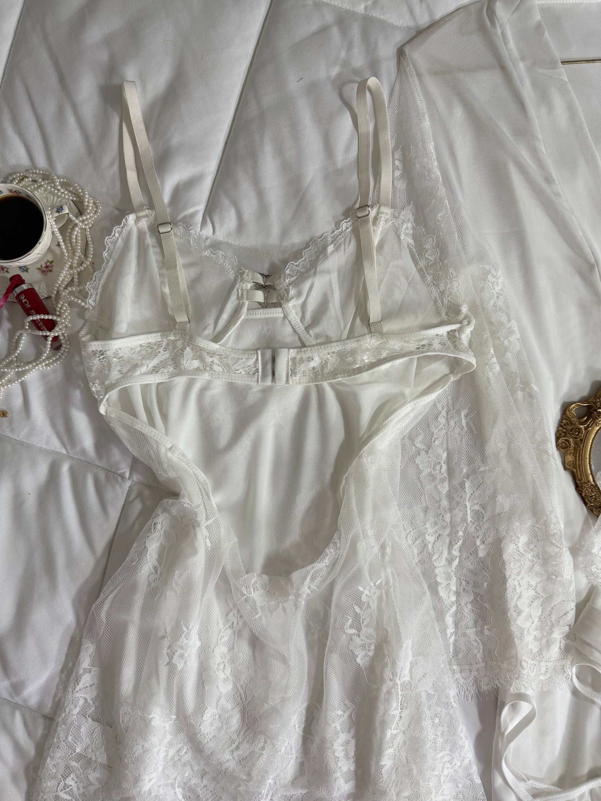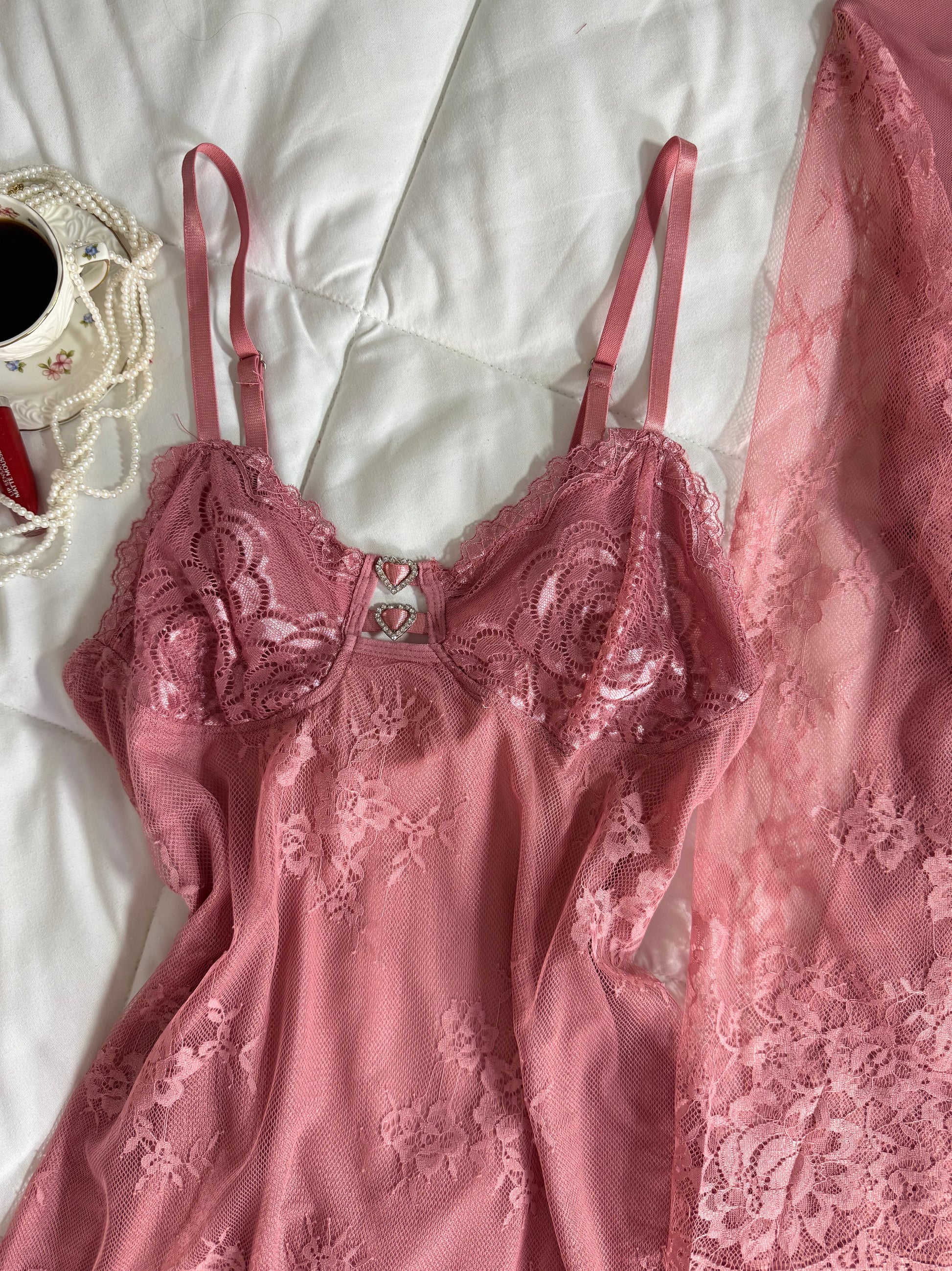 Un ensemble en dentelle raffinée qui allie douceur et élégance.